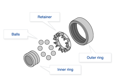 Ball bearings are machined parts made up of outer rings, inner rings, balls, retainers, and shields, and we produce and sell small size products with an outer diameter of 35 mm or less.