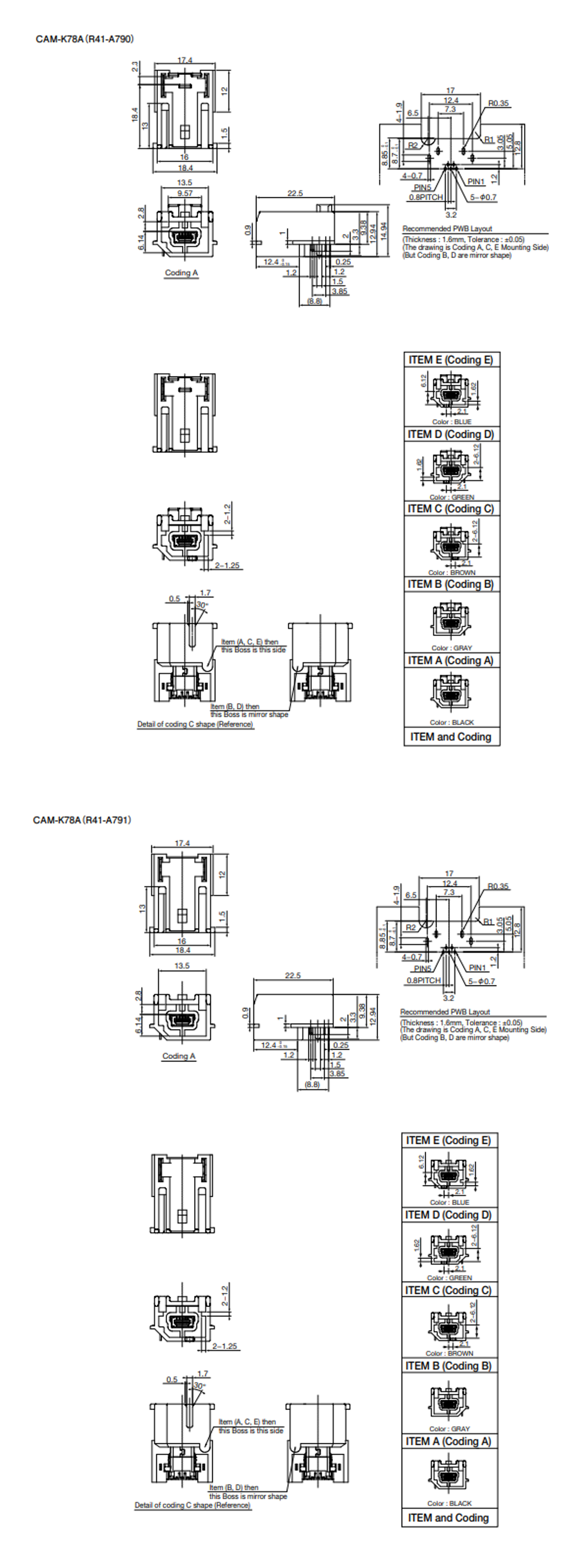 Parts No. CAM-K78A Pin Count 5 Mounting Method/