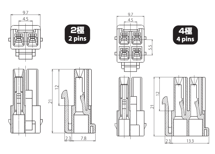 1. Designed for potting use, 6.00mm pitch for PCB connector