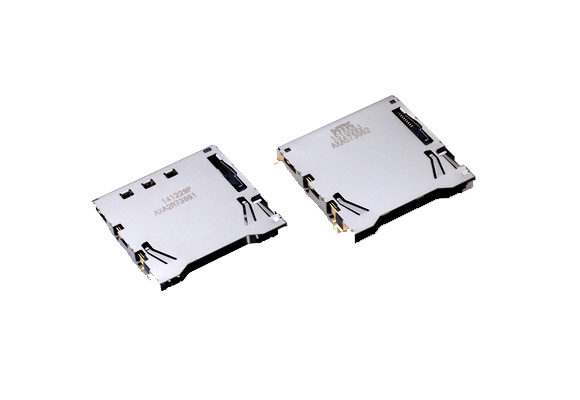 The card connectors are SD memory card sockets used in various markets and applications, from consumer electronics to industrial equipment. We offer two types of products, UHS-I and UHS-II compliant, with even higher transfer speeds. Each type comes in standard and reverse styles, and our unique double-sided metal shell structure provides unmatched robustness and high reliability.