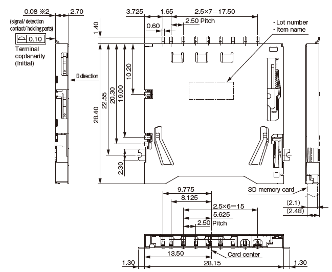 Parts No. AXA2R73*61P-M Pin Count Compliance with standards Mounting Method/