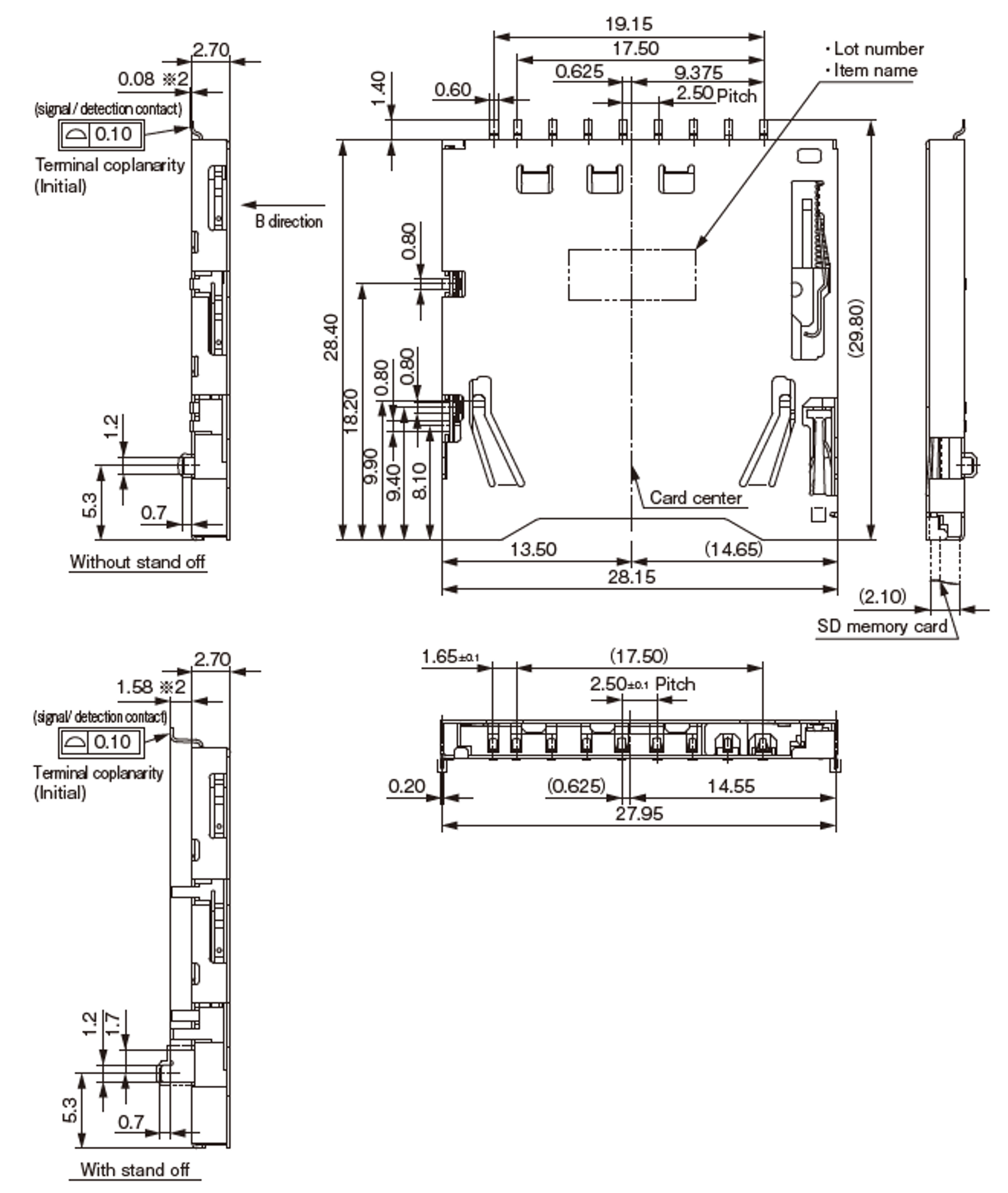 Parts No. AXA2S73062P-M Pin Count Compliance with standards Mounting Method/