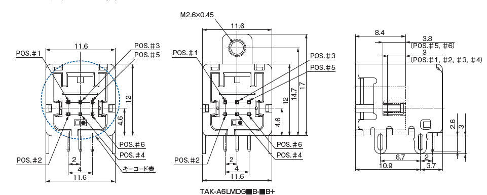 Parts No. TAK-A6LMDG#B-*B+ Pin Count 6 Pich