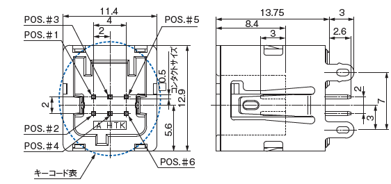 Parts No. TAK-V6MDG*A-*F+ Pin Count 6 Pich