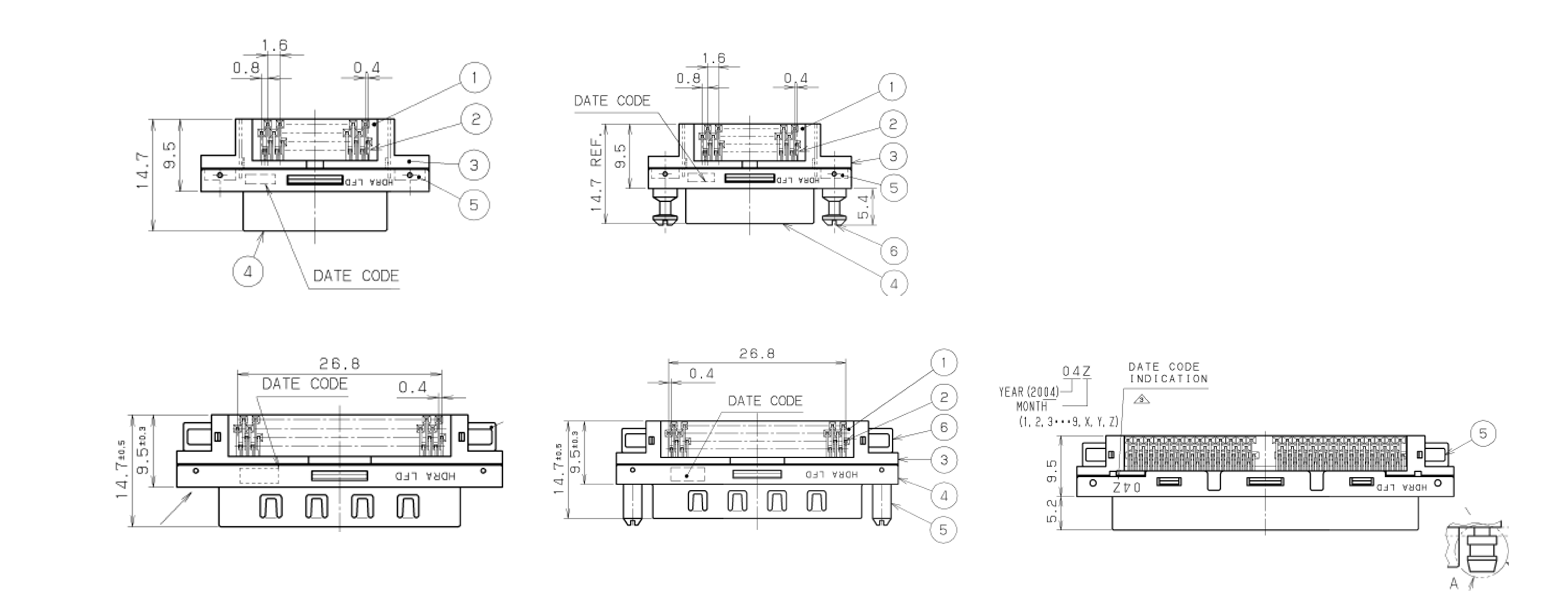 Parts No. HDRA-E#()LFDT-*+ Pin Count 36,68,100