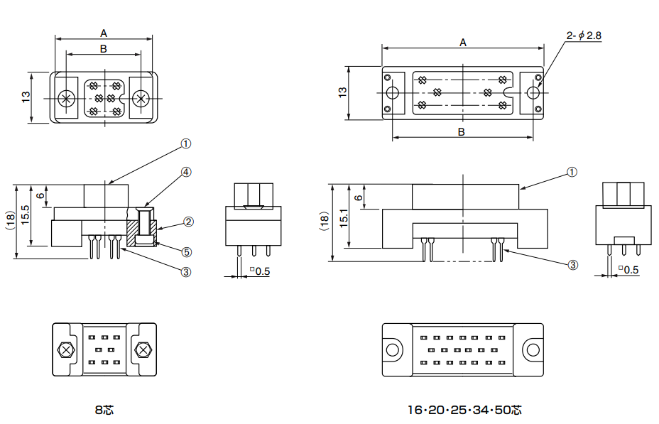 Parts No. MR-()FD2* Pin Count 8,16,20,25,34,50 Pich