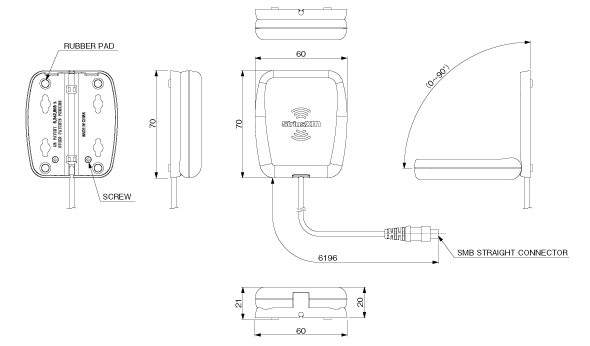 4. External Dimensions: 60 (W) x 70 (D) x 20 (H) mm