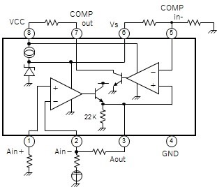 This IC contains two operational amplifiers and achieves extremely low offset voltage with a single power supply. The input offset voltage and the temperature drift of the input offset voltage of these amplifiers are one digit less than those of our conventional products.