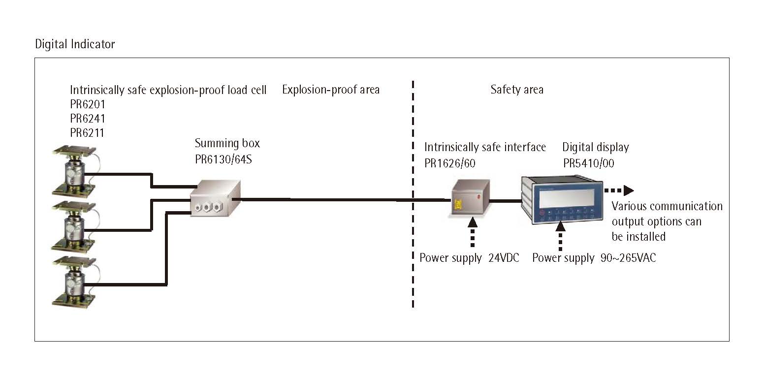 ・The PR1626/61 can be connected to load cell type explosion-proof scales and connect up to eight 650Ω load cells