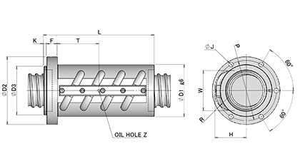 | ℓ(mm) | d0(mm) | dr(mm) | Dw(mm) | m | Ca(kN) | C0(kN) | (kN) | D1 | D2 | D3 | L | K | F | T | P | J | W | H | R | Z | |