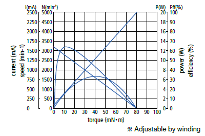| 32.0 | 3200 | 80.0 | 6.7(at 40mN·m) | 65(at 12mN·m) | 2700 | 1600 | 5000 |