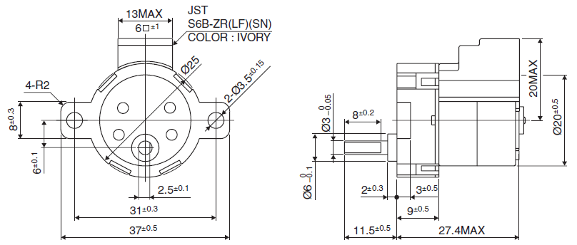 | 20.0 | 27.40 | Nd-Fe-B bonded magnet (MS80) | 100 | 500 | 2-2 phase | 300.0 | Class E(Except lead wire) | 0 | 65 | -30 | 80 | 20 | 90 |