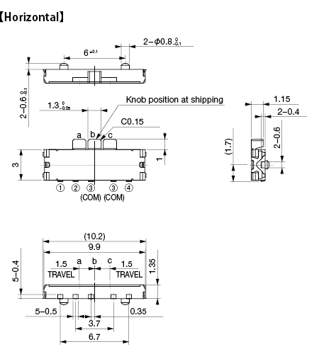 Click section: 1.5±1.0NLife 50,000cycles Pcs/Reel Horizontal : 5,000pcs
