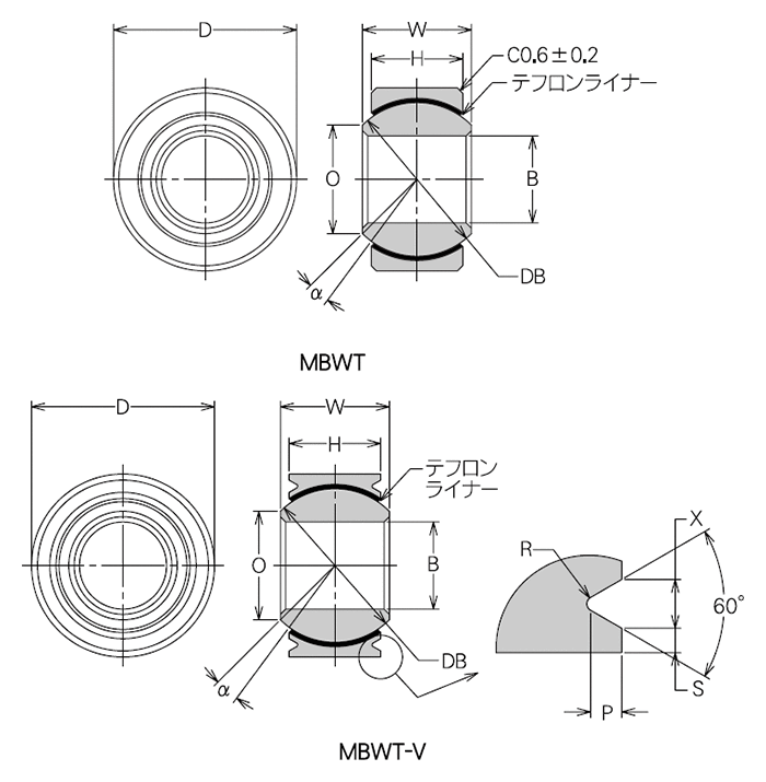 MBWT, MBWT-V 410 ステンレス鋼 440C ステンレス鋼 TFE -