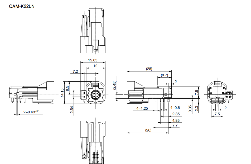 型式 CAM-K22LN 芯数 4+2 実装/結線方法 低背ライトアングルDIP VE 定格電流