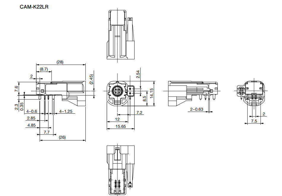 型式 CAM-K22LR 芯数 4+2 実装/結線方法 低背ライトアングルDIP VE リバース 定格電流