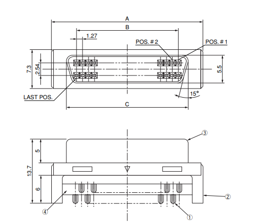 型式 PCS-E()FS+ 芯数 20,28,36,50,68 ピッチ