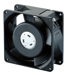 交流電圧で駆動するモーターでファン(羽根)を回転させる事により、産業機械や設備機器などの内部で発生する熱を外部へ排出し、内部を冷却します。 軸受には自社製ボールベアリングを使用しています。