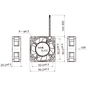 リード線:UL3385 AWG26 +: 赤 -: 黒