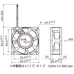 *1:Average Values in Free Air□=ケーシング形状 A:リブタイプ、E:フランジタイプ