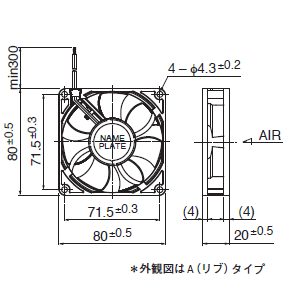 *1:Average Values in Free Air□=ケーシング形状 A:リブタイプ、E:フランジタイプ