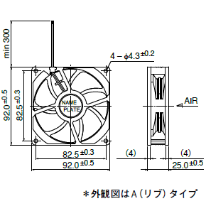 *1:Average Values in Free Air□=ケーシング形状 A:リブタイプ、E:フランジタイプ