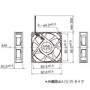 *1:Average Values in Free Air□=ケーシング形状 A:リブタイプ、E:フランジタイプ