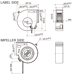 リード線:UL1007 AWG26 +: 赤 -: 黒