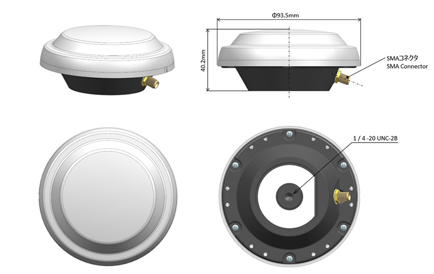 3. アンテナサイズ Φ93.5mm×40.2(H)mm。