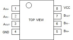 このICは2個のオペアンプを内蔵したデュアルタイプのオペアンプで、単一電源で極めて低いオフセット電圧を実現しています。このオペアンプの入力オフセット電圧と入力オフセット電圧温度ドリフトは、従来製品よりも1桁少なくなっています。単一電源を使用することができるので、電池2本の電圧で動作させることができます。単電源、低消費電流、低オフセット電圧のため、電池2本を使用して携帯機器の超小型信号を増幅する機器に適しています。