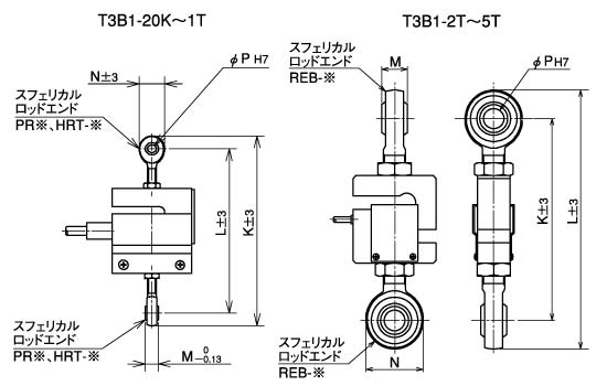 | REB/PR/HRTシリーズ REB3 | T3B1シリーズ スフェリカルロッドエンド装着寸法図 | ![]() |