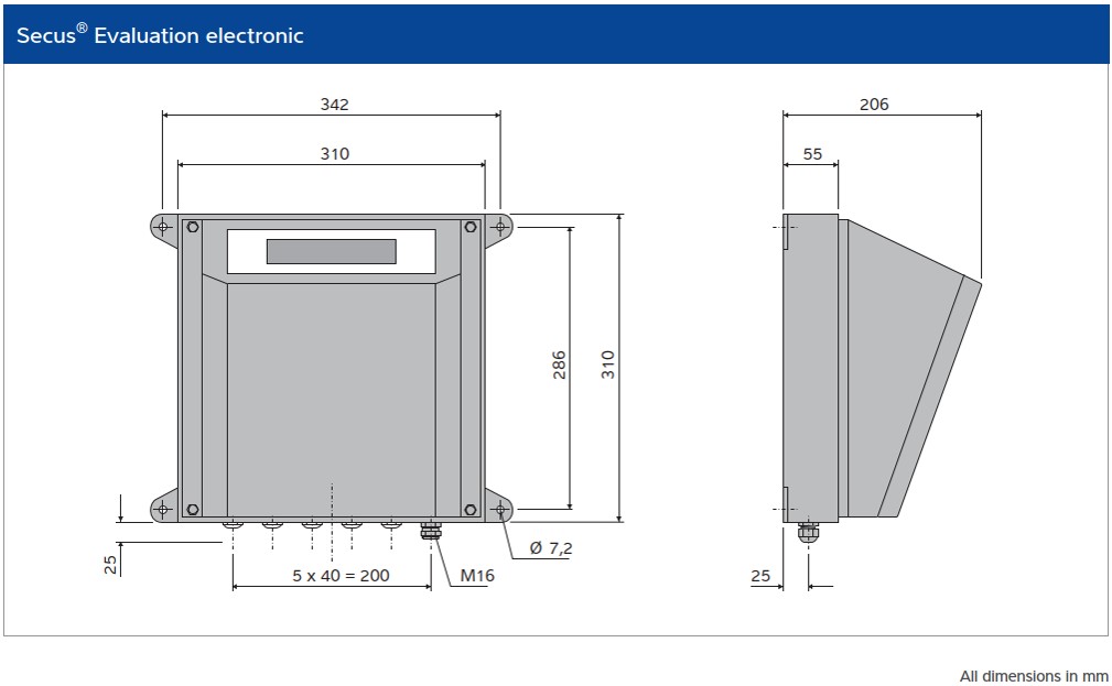 電源 90V~260V 周波数 47Hz~63Hz 出力 3 フリープログラムエラー出力, 1 固定出力 使用環境 動作範囲 -10℃~+55℃ 製品温度 -30℃~+55℃, 冷却クーラー付きの場合 +150℃まで 保護等級 IP55 (標準), IP66 (オプション) 筐体 AISI 304 (1.3305) スチール (塗布) データインターフェース TCP-IP, RS232, RS422, CAN bus, Fieldbus, Profibus オプション 指紋認証、遠隔操作、排出装置監視、排出監視USBプリント等 -