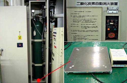 ボンベの下に台秤を置き、二酸化炭素が少なくなったら警報を出すシステムです。