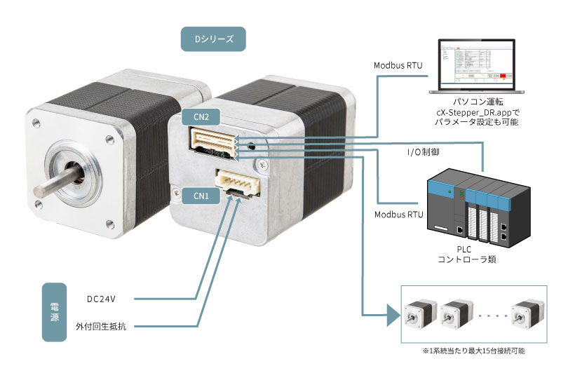 ドライバとエンコーダが一体型になったハイブリッドステッピングモーターです。一体型によりモーターとドライバ間の配線が不要となり、省スペース化と省配線化を実現します。特に設置面積が限られているスペースに最適です。