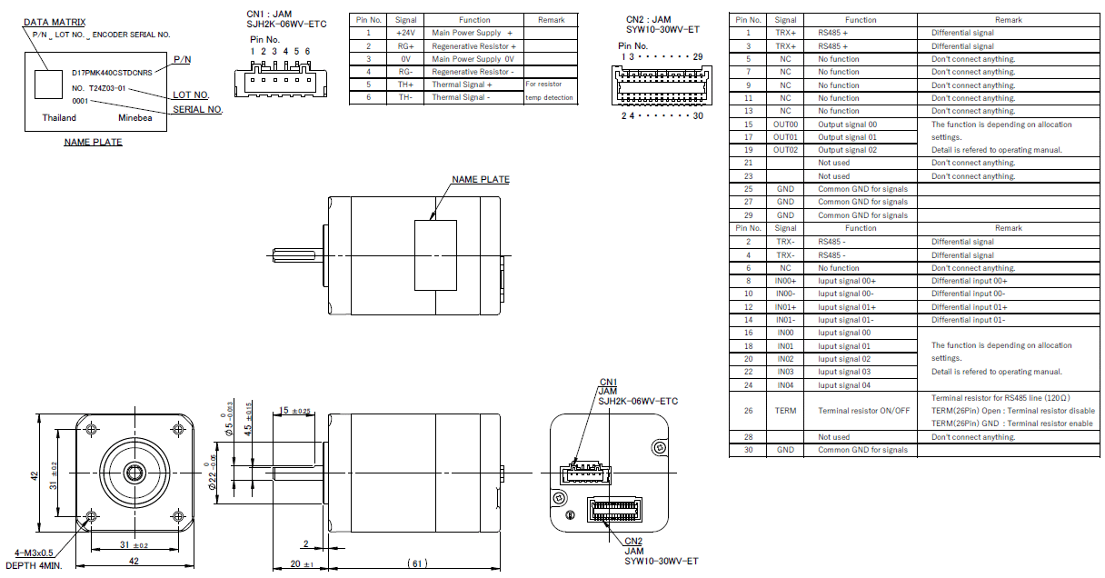 [CPR]16384 通信仕様 RS485 1系統当たり最大接続台数 15 パルス列運転 ✔ I/O運転 ✔ 質量