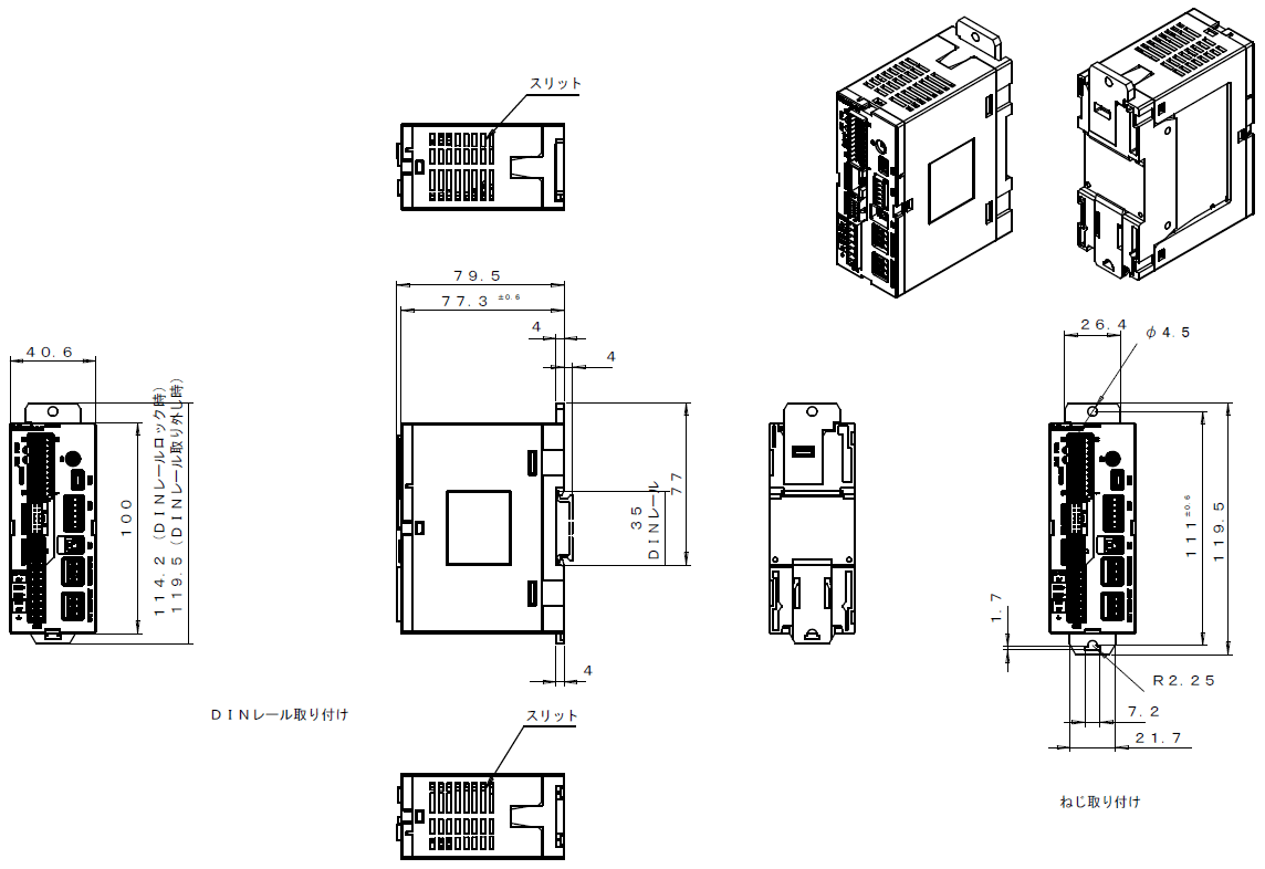 [mm]119.5 モーター接続軸数 単軸 主回路入力電源電圧 DC24/48V 主回路入力電流 モーター定格電流以上 制御回路入力電源電圧 DC24V 制御回路入力電流