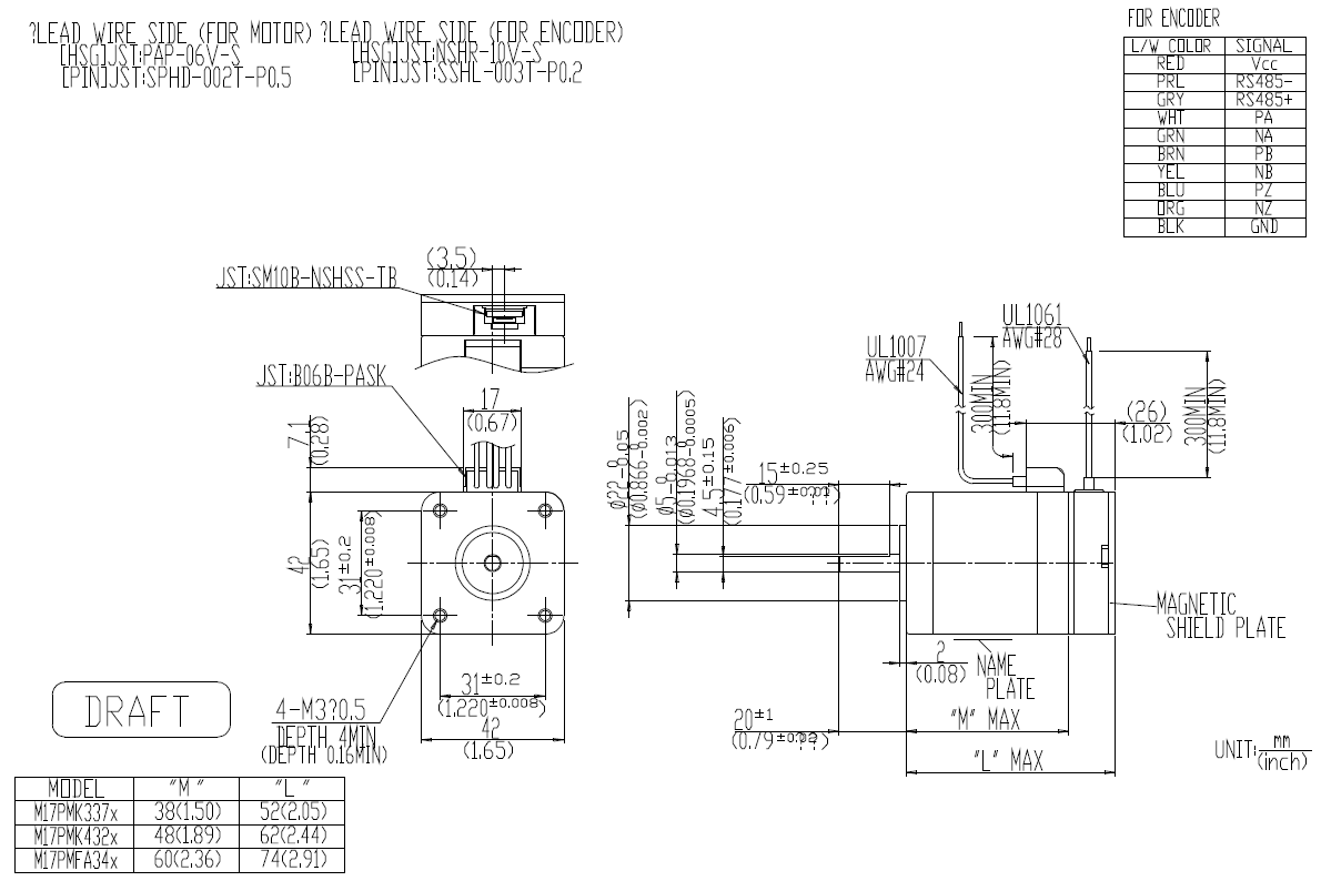 M11PMK043CSMA00 28 49 1.5 1.3 100 8 4.4 16000 170 200 M11PMK142CSMA00 28 57 1.5 1.5 145 13 5.4 16000 200 200 M11PMK241CSMA00 28 68 1.5 1.7 200 16 8 16000 270 200 M17PMK337CSMA00 42 52 2 0.9 290 50 11 16000 320 1000 M17PMK432CSMA00 42 62 2 1.2 510 75 16.7 16000 420 1000 M17PMFA34CSMA00 42 74 2.6 1 690 162 30 16000 580 1000 M23KMK358CSMA00 56.4 64 1.7 1.9 800 180 29 16000 660 1000 M23KMH041CSMA00 56.4 69 2 0.9 1300 320 54 16000 750 1000 M23KMK744CSMA00 56.4 91 3 0.7 1800 490 93 16000 1130 1000 モーター外観図
