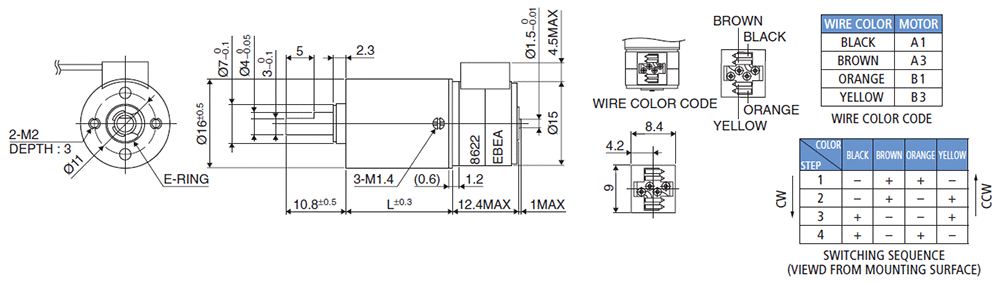 [mm]15.0 ネオジウム鉄ボンド (MS70) 100 500 300 2-2相 10.0 100M[Ω]Min. at DC500[V] AC500[V] 1[min] Class E(リード線を除く) 65 -10 50 0.03 *フランジ端面から6[mm] 0.25 -