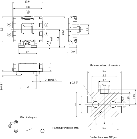 2. ステンレス製メタルドーム使用により、シャープな感触で高寿命。