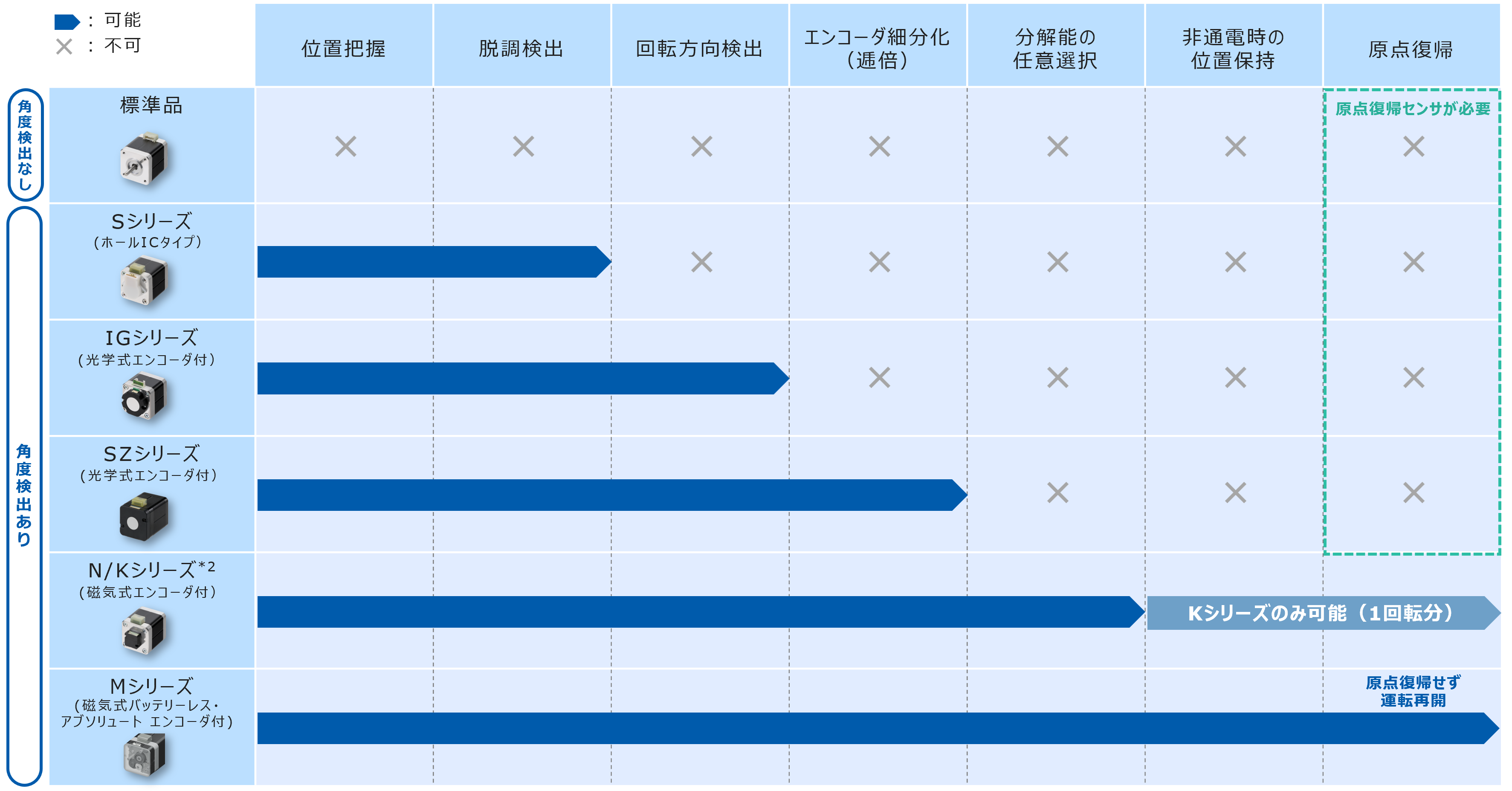 Kシリーズ*2:Nシリーズの機能+非通電時の位置情報(1回転内)を保持。( 1~4,000cprの範囲で指定可)
